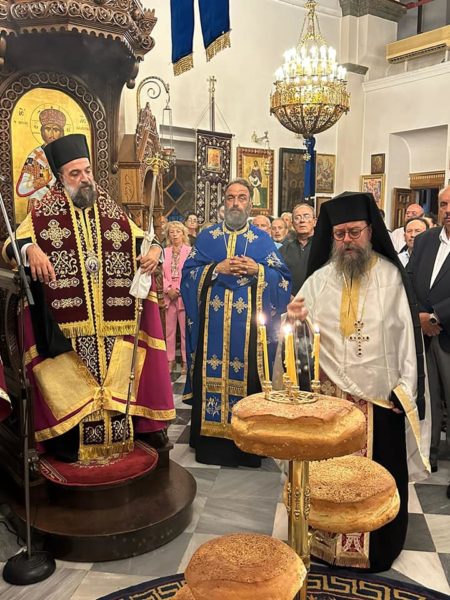 Ο Σεβασμιώτατος Μητροπολίτης Θήρας Αμοργού και Νήσων κ. Αμφιλόχιος χοροστάτησε στον πανηγυρικό εσπερινό, ευλόγησε τους προσφερθέντες άρτους και κηρυξε τον θείο λόγο στον Ιερό Ενοριακό Ναό του Αγίου Δημητρίου στην Μεσσαριά Σαντορίνης.
