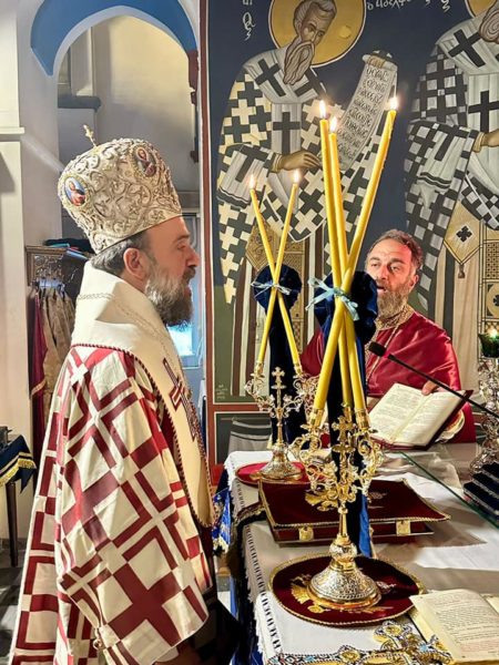 Ανήμερα της εορτής, ο Σεβασμιώτατος Ποιμενάρχης χοροστάτησε στην ακολουθία του Όρθρου και προεξήρχε του μυστηρίου της Θείας Λειτουργίας.