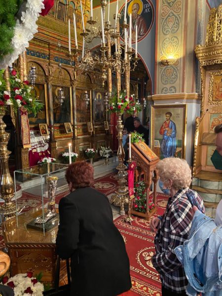 Την Κυριακή του Πάσχα το απόγευμα ο Σεβασμιώτατος Μητροπολίτης κόμισε προς ευλογία και αγιασμό των πιστών τμήμα του ιερού λειψάνου του Αγίου Γεωργίου και στην συνέχεια τελέστηκε ο πανηγυρικός εσπερινός.