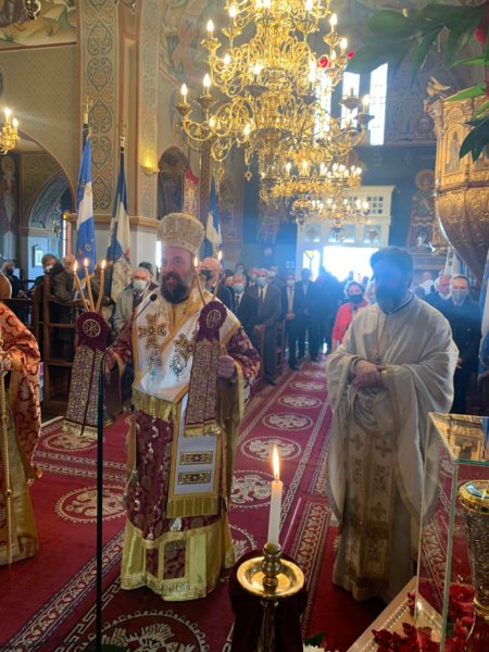 Την κυριώνυμο ημέρα χοροστάτησε του όρθρου και προεξήρχε της Θείας Λειτουργίας ο Σεβασμιώτατος Μητροπολίτης Θήρας πλαισιούμενος από ιερείς της Μητροπόλεως. Κατά την διάρκεια του κοινωνικού ο Σεβασμιώτατος αναφέρθηκε στον βίο του Αγίου Γεωργίου καθώς και στα γεγονότα της Ανάστασης του Κυρίου.