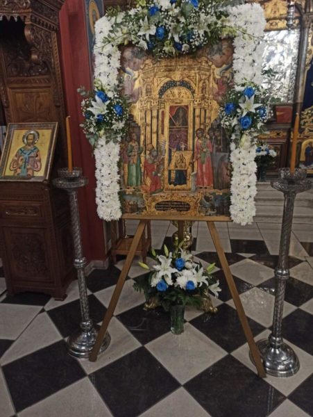 Προ του πέρατος της Θείας Λειτουργίας πραγματοποιήθηκε η λιτάνευση της ιεράς Εικόνας του Αγίου Γερασίμου και ευλογήθηκε η παραδοσιακή πανήγυρις.