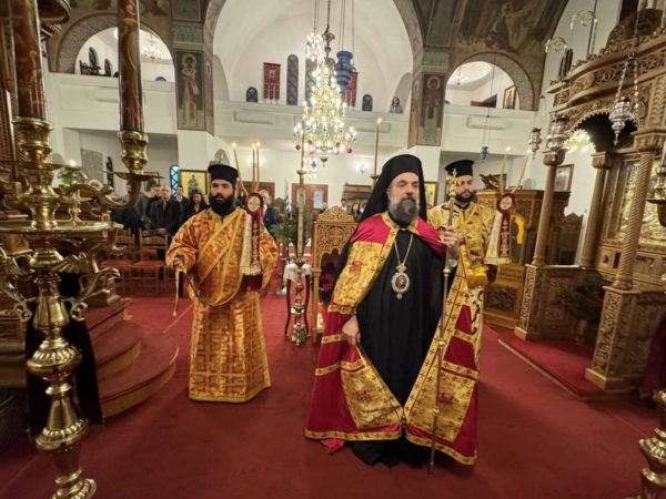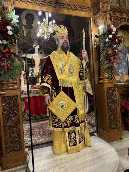 Ο Σεβασμιώτατος Ποιμενάρχης, κατά το πέρας της Θείας Λειτουργίας, απηύθυνε εόρτιες πατρικές ευχές προς τους τοπικούς άρχοντες και τον πιστό λαό, καλώντας τους να παραμείνουν ενωμένοι, μέσα στην Εκκλησία, πιστεύοντες στον τεχθέντα Βασιλέα της Ειρήνης και συμμετέχοντες στα ιερά μυστήρια και κυρίως σε αυτό της Θείας Λειτουργίας όπου κάθε Χριστιανός προγεύεται τη Χάρη της μετοχής στην ατελεύτητη Βασιλεία του Θεού.