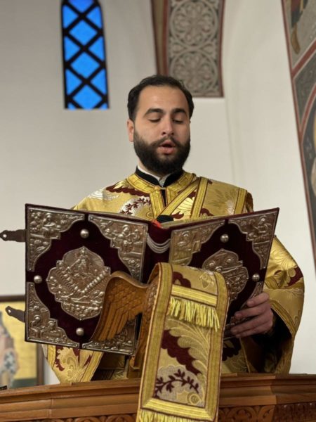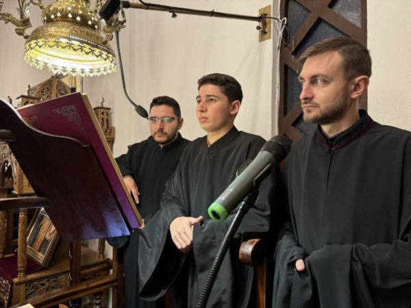 Το ιερό αναλόγιο διηκόνησε χορός ιεροψαλτών υπό τη διεύθυνση του πρωτοψάλτου κ. Ευτυχίου Μαρκοζάννε.