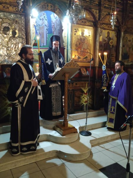 Την Μεγάλη Δευτέρα το απόγευμα στην Ακολουθία του Νυμφίου, η οποία αποτελεί τον όρθρο της Μεγάλης Τρίτης, ο Σεβασμιώτατος Μητροπολίτης Θήρας κ. Αμφιλόχιος χοροστάτησε στον Ιερό Ναό Αγίου Γερασίμου στο Φηροστεφάνι Θήρας.