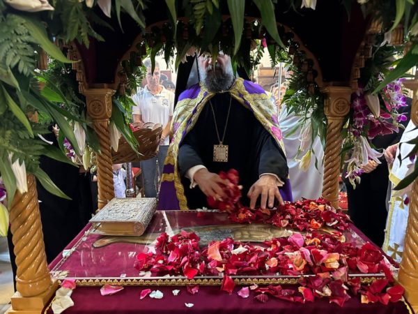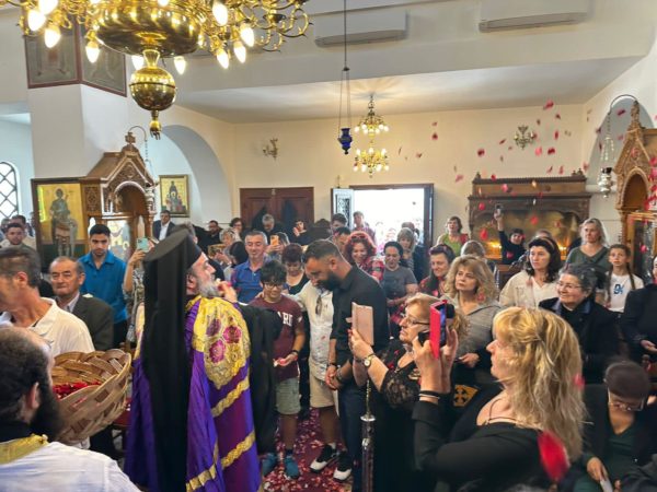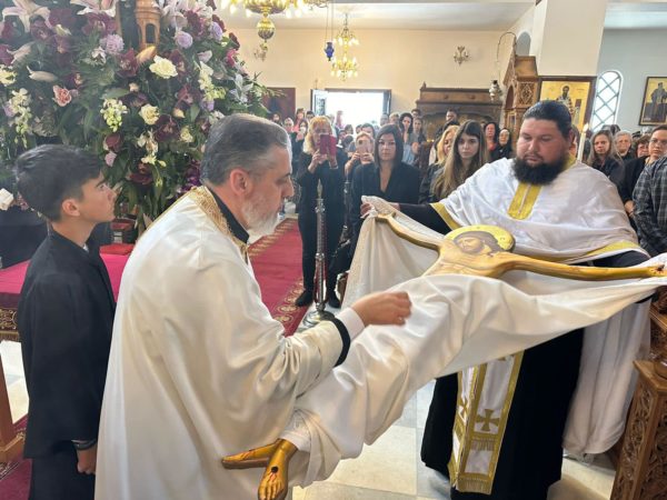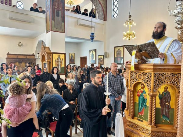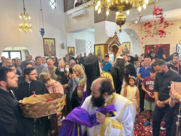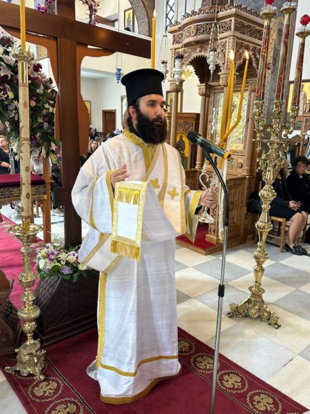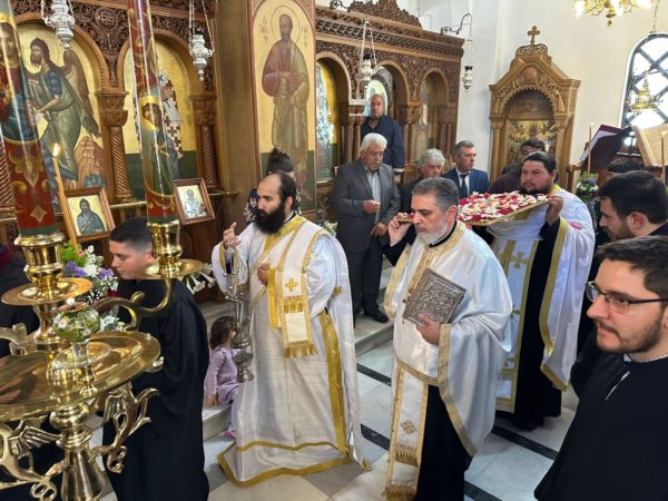 Ο Σεβασμιώτατος πλαισιώθηκε από τον αιδεσιμολογιώτατο Γενικό Αρχιερατικό Επίτροπο της Ιεράς Μητροπόλεως π. Νικόλαο Σιγάλα, τον και προϊστάμενο του Ιερού Ναού, τον πρεσβύτερο π. Κυριάκο Καραμολέγκο και τον Ιεροδιάκονο π. Νεκτάριο Σάκκα.