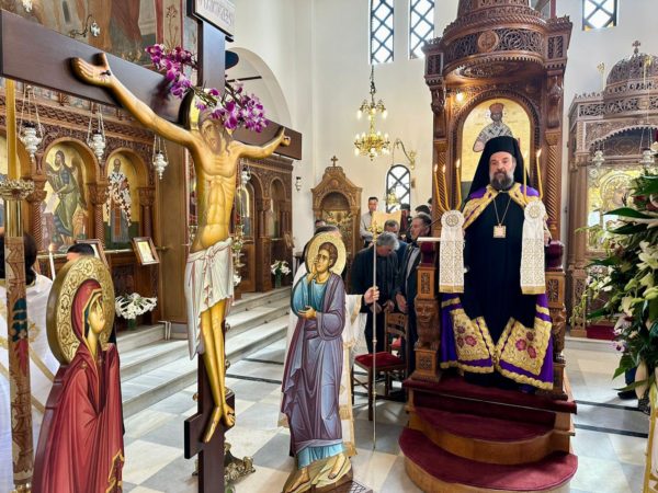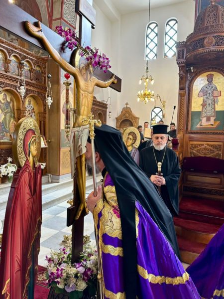 Ο Μητροπολίτης Θήρας, Αμοργού & Νήσων κ. Αμφιλόχιος χοροστάτησε σήμερα κατά τον Εσπερινό της Αποκαθηλώσεως στον Ιερό Ενοριακό Ναό Ευαγγελισμού της Θεοτόκου Εμπορείου. Ο Σεβασμιώτατος κήρυξε το θείο Λόγο αναφερθείς στα γεγονότα της ημέρας και κυρίως στη μεγάλη αρετή της συγχώρεσης, στο μεγάλο μήνυμα της «συγγνώμης» που ήλθε από το Φρικτό Γολγοθά.