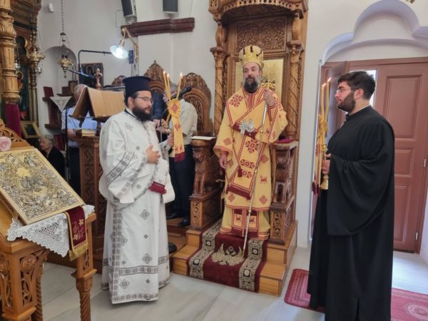 Στον πανηγυρίζοντα Ιερό Ενοριακό Ναό Αγίας Θεοδοσίας στο Ακρωτήρι της Θήρας χοροστάτησε του όρθρου και τέλεσε την Θεία Λειτουργία σήμερα Κυριακή του Τυφλού ο Σεβασμιώτατος Μητροπολίτης Θήρας κ. Αμφιλόχιος πλαισιούμενος από τον αδελφό της Ιεράς Μονής Προφήτου Ηλιού π. Ιγνάτιο Αργυρό, τον εφημέριο του Ναού π. Ιορδάνη Ναστόφσκυ και τον διάκονο π. Χαράλαμπο Σαλίβερο.