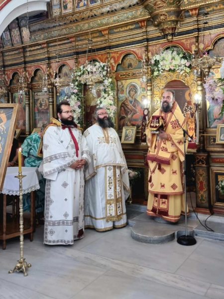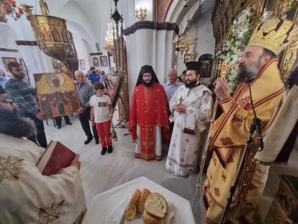 Μετά το πέρας της Αρχιερατικής Θείας Λειτουργίας ευλογήθηκε η παραδοσιακή πανήγυρις και ακολούθησε περιφορά των Ιερών Εικόνων του Αγίου, της Υπεραγίας Θεοτόκου, στα στενά και γραφικά σοκάκια του χωριού.