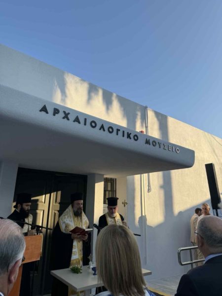 Τον αγιασμό των εγκαινίων του εκ βάθρων ανακαινισμένου Αρχαιολογικού Μουσείου Σαντορίνης και της έκθεσης «Κυκλαδίτισσες: Άγνωστες ιστορίες γυναικών των Κυκλάδων» τέλεσε την Παρασκευή 20 Ιουνίου ο Σεβασμιώτατος Μητροπολίτης Θήρας, Αμοργού και Νήσων κ. Αμφιλόχιος, παρουσία των Υπουργών Πολιτισμού και Αγροτικής Ανάπτυξης, των Βουλευτών Κυκλάδων, εκπροσώπων του Υπουργείου Πολιτισμού, των τοπικών αρχών της Περιφερείας Νοτίου Αιγαίου και του Δήμου Θήρας και της επιστημονικής κοινότητας.