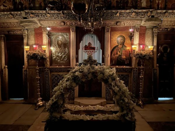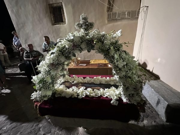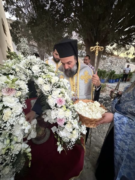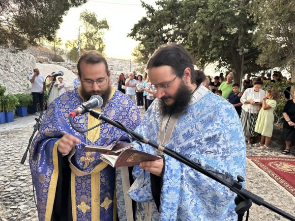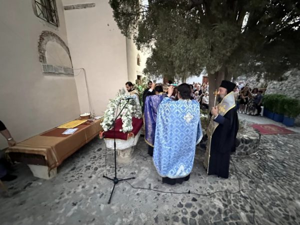 Με κατάνυξη ψάλθηκε χυες 13 Αυγούστου 2024 η ακολουθία του Εσπερινού, της Μεγάλης Παράκλησης προς την Υπεραγία Θεοτόκο και των εγκώμια της Υπεραγίας Θεοτόκου μπροστά στον επιτάφιό της, στον Ιερό Προσκυνηματικό Ναό Παναγίας της Επισκοπής στην Μέσα Γωνιά της Σαντορίνης χοροσταντούντος του Σεβασμιωτάτου Μητροπολίτου Θήρας, Αμοργού και Νήσων κ. Αμφιλοχίου, με τη συμμετοχή πλήθους πιστών.