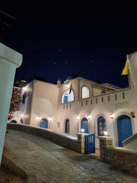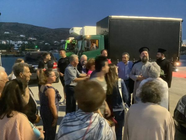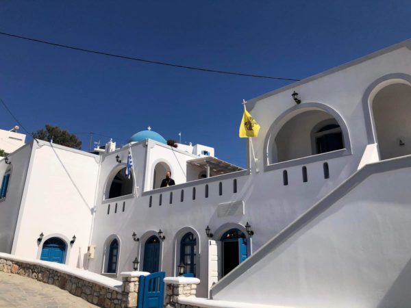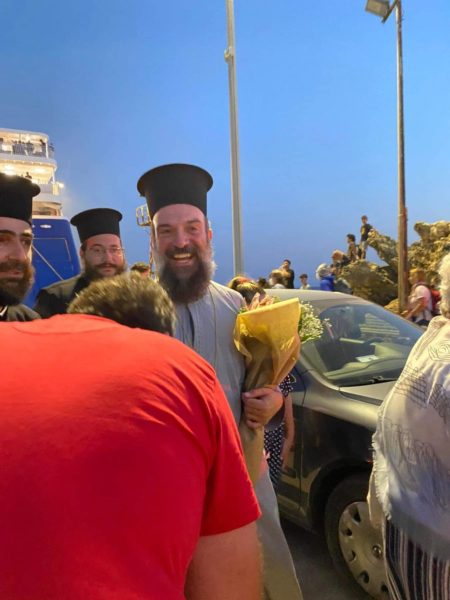 Στην Δονούσα, χθες Σάββατο, τον υποδέχθηκαν οι κάτοικοι της νήσου με επικεφαλής τον εφημέριο της νήσου π. Κωνσταντίνο Μαρκουλή, ο οποίος με προσωπική του μέριμνα ανήγειρε εκ θεμελίων και ευπρέπισε πνευματικό κέντρο της ενορίας με σκοπό τη διακονία του μικρού μεν σε αριθμό αλλά μεγάλου σε ευσέβεια πιστού λαού της νήσου.