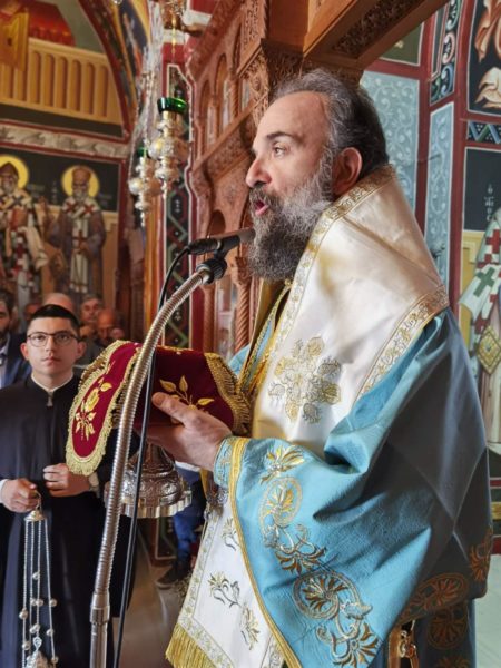 Ο Σεβασμιώτατος στο κήρυγμά του ανέφερε ότι ο Αρχάγγελος Γαβριήλ έγινε αγγελιαφόρος της βουλής του Θεού προς την Θεοτόκο καθώς η Παναγία συγκέντρωνε στο πρόσωπο της όλες εκείνες τις ανθρώπινες αρετές που έκαναν τον Θεό να την επιλέξει και να συνεργήσει στο μυστήριο της σωτηρίας του ανθρώπου. Η Παναγία γίνεται κλίμακα για να κατέβει ο Θεός από τον ουρανό στην γη για να ανέβει ο άνθρωπος από την γη στον ουρανό.
