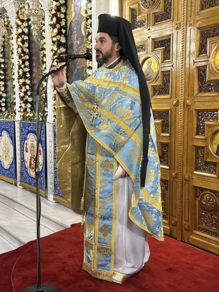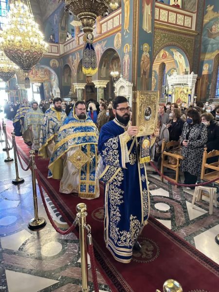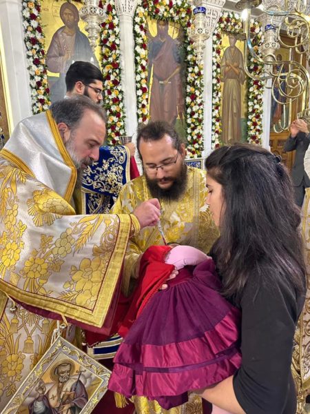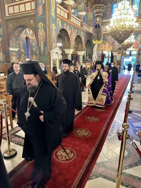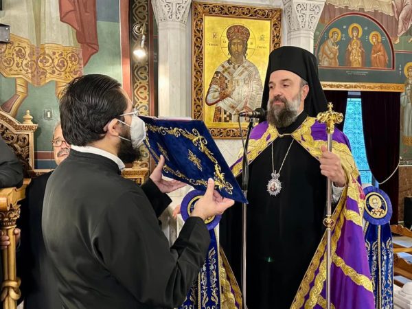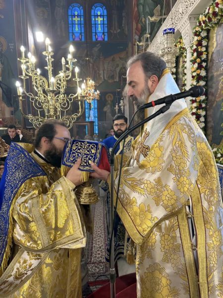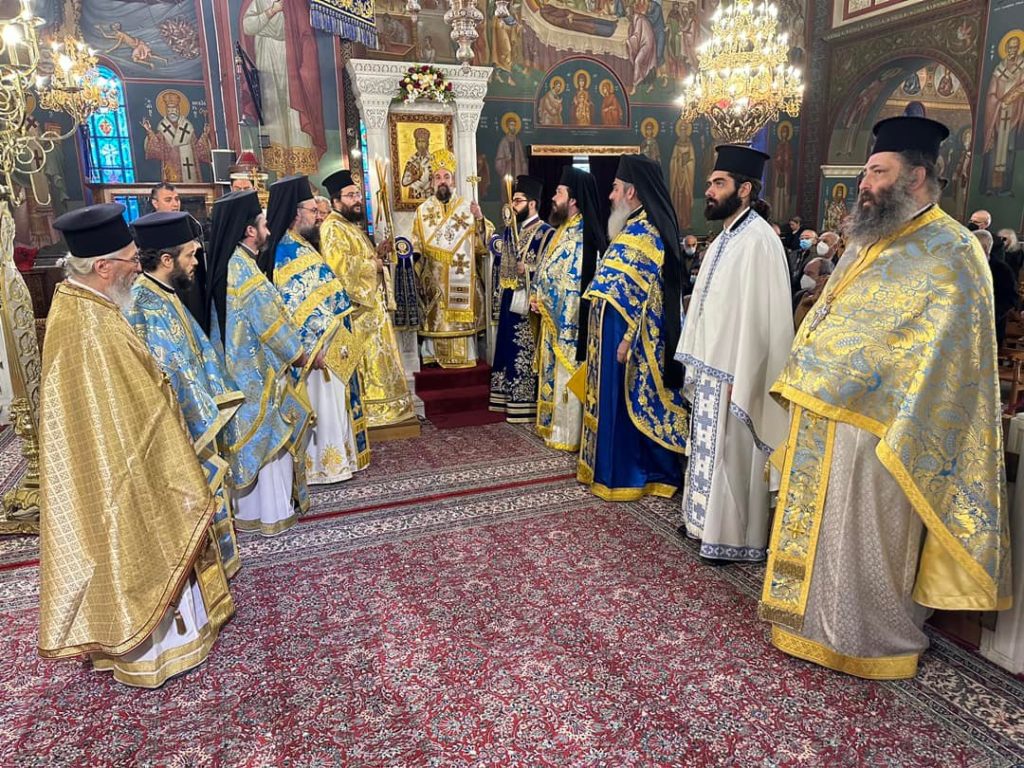 Τέλος ο Σεβασμιώτατος ευχαρίστησε το Μακαριώτατο Αρχιεπίσκοπο Αθηνών και πάσης Ελλάδος κ.κ. Ιερώνυμο, με την κανονική άδεια του οποίου ιερούργησε και προεξήρχε της πανηγύρεως, και ευχήθηκε δεόντως στον εορτάζοντα προϊστάμενο π. Νικόλαο Κλάδη!