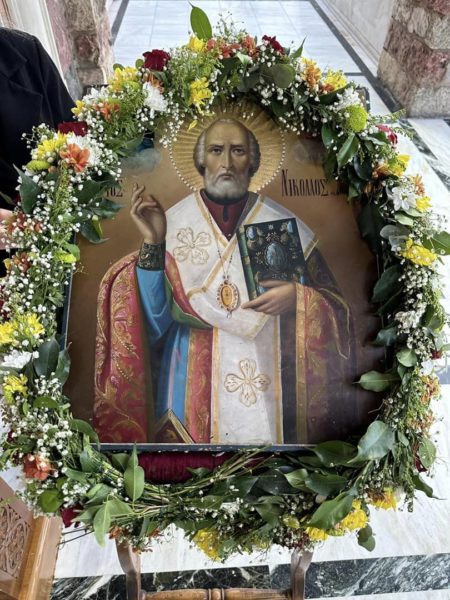 Την διακονία του λόγου ανέλαβε ο Πανοσιολογιώτατος Αρχιμανδρίτης π. Αλέξιος Πετρίδης ο οποίος ανέφερε πως ο άγιος Νικόλαος κυριολεκτικά αποτελεί τον “κανόνα πίστεως”, όπως ψάλλουμε στο απολυτίκιό του, αφού στη ζωή του και σε όποια περίσταση συνάντησε τον βλέπουμε να δρα και να κινείται με μόνο κριτήριο την πιστή εφαρμογή του νόμου του Θεού και την αγάπη προς τον Θεό και τους ανθρώπους.
