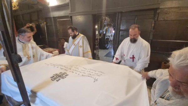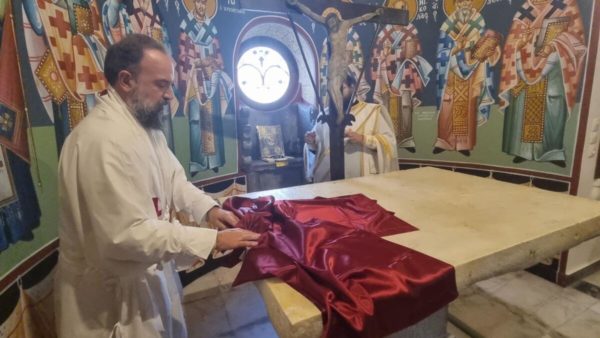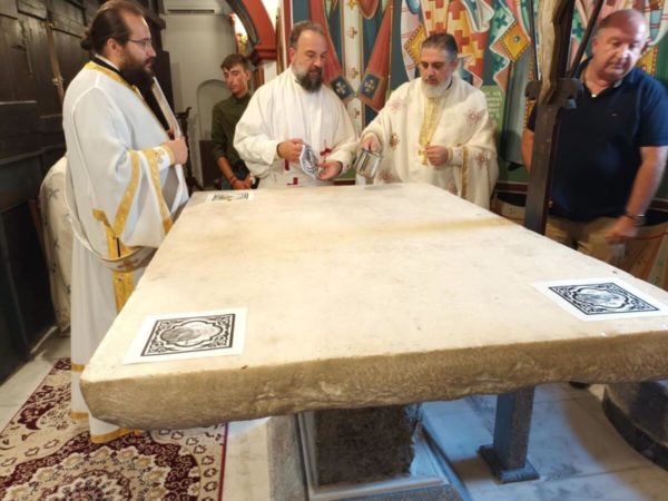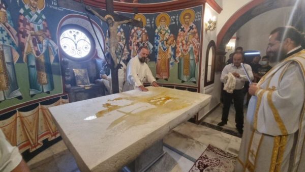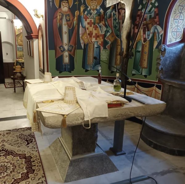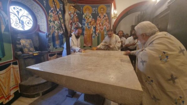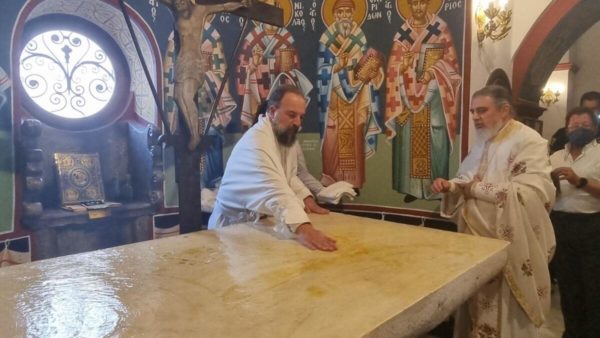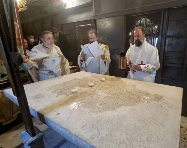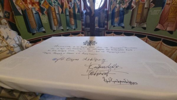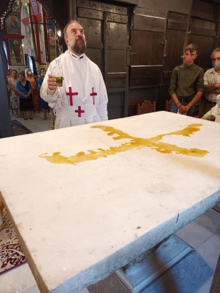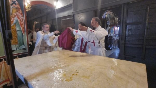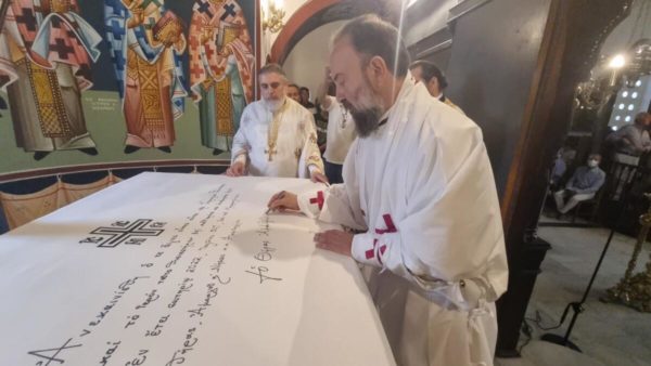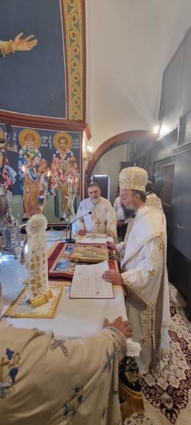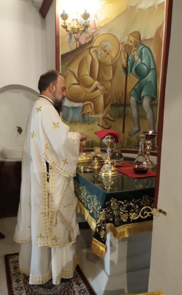 Προ της Δοξολογίας, με ιδιαίτερη λαμπρότητα και σύμφωνα με την τάξη της Μητρός Εκκλησίας επραγματοποίησε την τελετή της εκπλύσεως και αναμυρώσεως του ιερού θυσιαστηρίου του εν λόγω Ιερού Ναού, εξηγώντας σταδιακά στους πιστούς όλα τα τελούμενα.