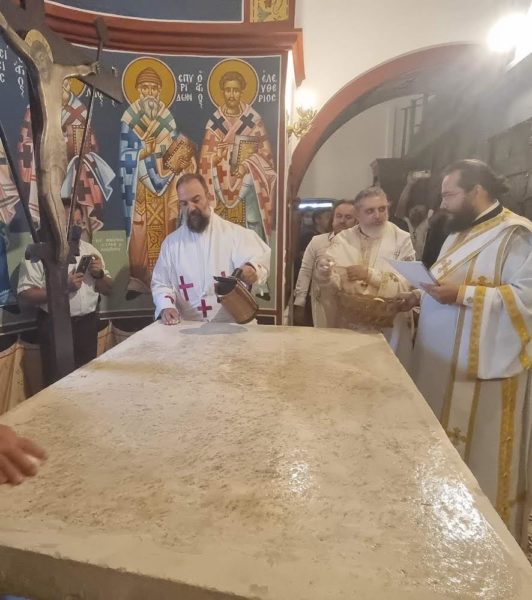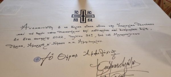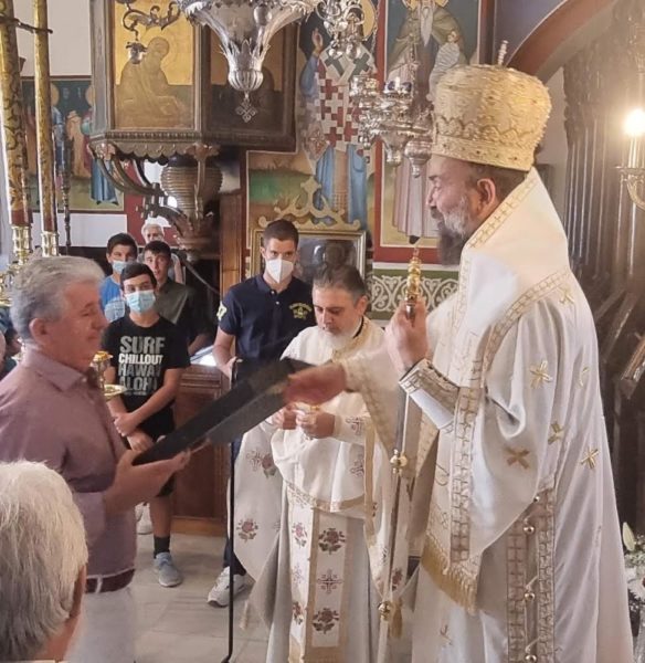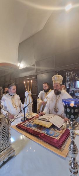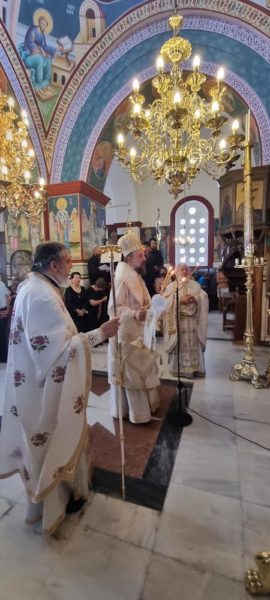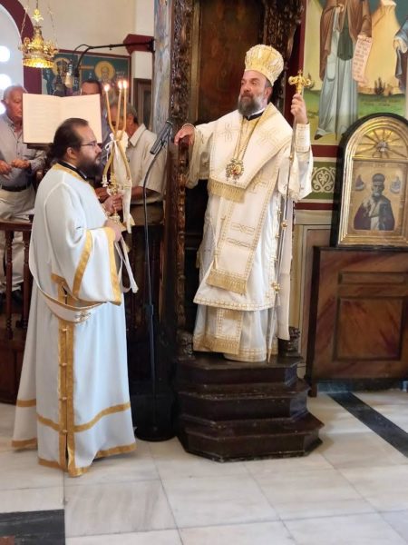 Ο Σεβασμιώτατος Μητροπολίτης Θήρας, Αμοργού και Νήσων κ. Αμφιλόχιος χοροστάτησε του Όρθρου και ιερούργησε την πρώτη Θεία Λειτουργία στον άρτι ανακαινισθέντα Ενοριακό Ιερό Ναό Εισοδίων της Θεοτόκου Μεγαλοχωρίου Σαντορίνης την Κυριακή 31 Ιουλίου 2022.