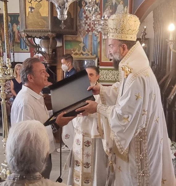 Ο Σεβασμιώτατος Ποιμενάρχης, Μητροπολίτης Θήρας, Αμοργού και Νήσων κ. Αμφιλόχιος, επαίνεσε τον άμεσο συνεργάτη του π. Νικόλαο Σιγάλα τόσο για το έργο της ανακαινίσεως του Ενοριακού Ιερού Ναού των Εισοδίων της Θεοτόκου όσο και για τη γενικότερη διακονία του στην Ενορία του και ως Γενικού Αρχιερατικού Επιτρόπου στην Ιερά Μητρόπολη.