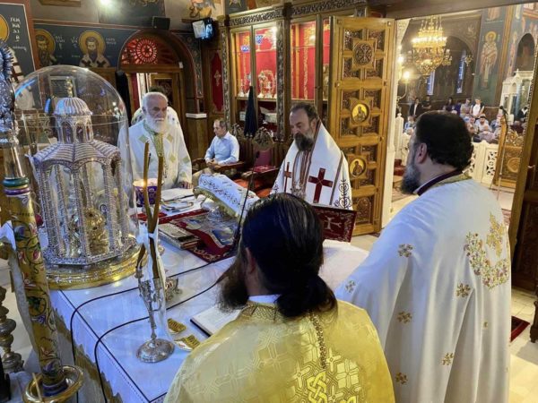 Ο Σεβασμιώτατος Μητροπολίτης Θήρας Αμοργού και Νήσων κ. Αμφιλόχιος, ευρισκόμενος στην Αθήνα προκειμένου να συμμετάσχει στις εργασίες της Ιεραρχίας της Ιεράς Συνόδου της Εκκλησίας της Ελλάδος, τέλεσε το μυστήριο της Θείας Λειτουργίας στον Ιερό Ναό Αγίου Νικολάου Καλλιθέας, κατόπιν προσκλήσεως του προϊσταμένου του εν λόγω Ναού αρχιμ. Νικολάου Κλάδη, τη συμμετοχή των ιερέων του Ναού.