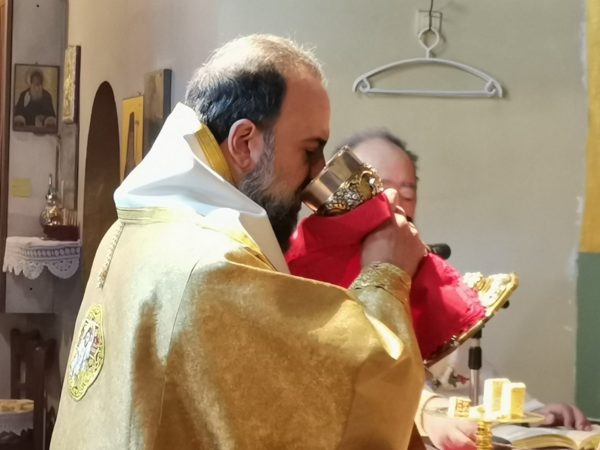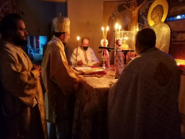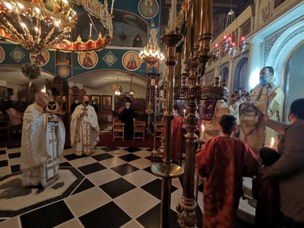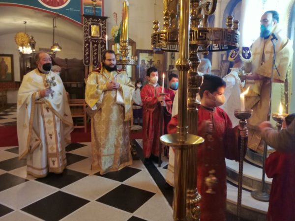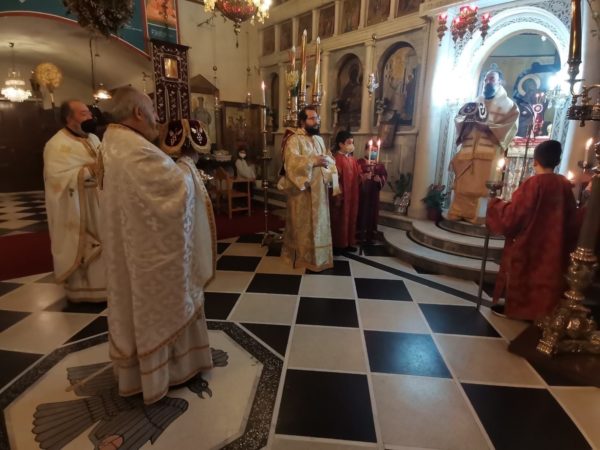 Με τον Σεβασμιώτατο συλλειτούργησαν ο π. Ευάγγελος Ζώρζος, ο επί 53 χρόνια προϊστάμενος του Ιερού Ναού π. Γεώργιος Φύτρος και ο διάκονος π. Χαράλαμπος Σαλίβερος.