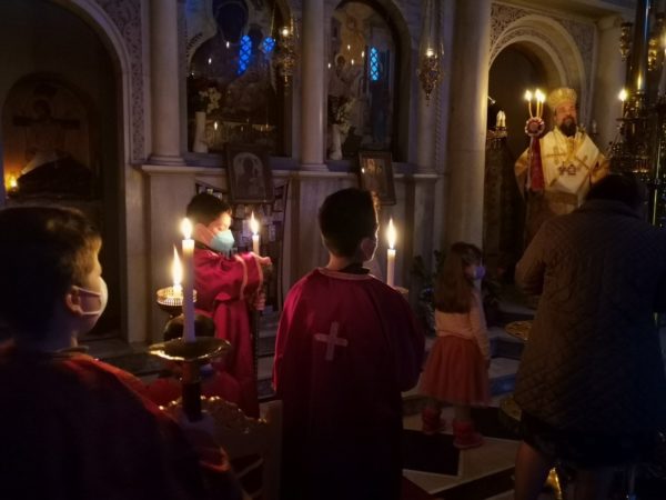 Στο τέλος της ακολουθίας ο π. Γεώργιος Φύτρος καλωσόρισε το Σεβασμιώτατο και του ευχήθηκε εκ προσώπου του πληρώματος της ενορίας πολυχρόνια και καλλίκαρπη ποιμαντορία, ενώ στην αντιφώνησή του ο Σεβασμιώτατος ευχαρίστησε τον π. Γεώργιο για την υποδοχή, που του επεφύλαξε, και συνεχάρη τους πιστούς για την αγάπη και τον σεβασμό που επιδεικνύουν στον εφημέριο τους αλλά και για την πίστη τήρηση των μέτρων κατά της διασποράς του κορωνοϊού.