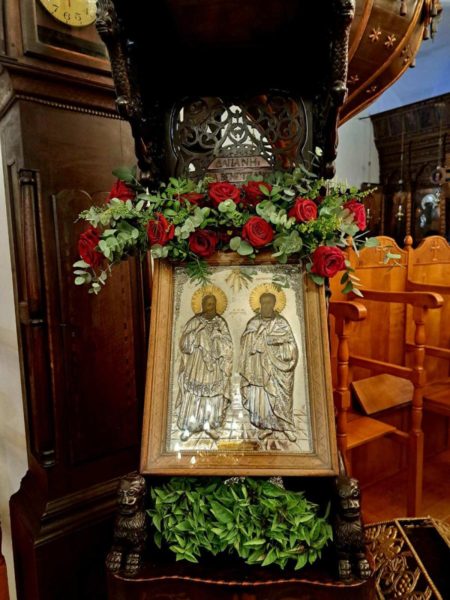 Πανηγυρικός Εσπερινός στον Ιερό Ναό Αγίων Αναργύρων στο Μεγαλοχώρι της Σαντορίνης