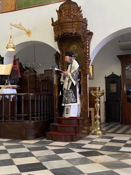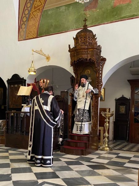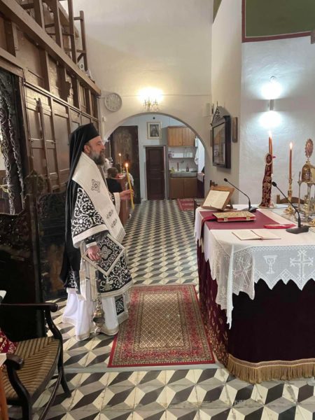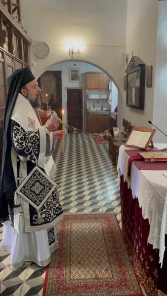 Την Πέμπτη 14 Απριλίου 2022, ο Σεβασμιώτατος Μητροπολίτης Θήρας, Αμοργού και Νήσων κ. Αμφιλόχιος τέλεσε την εσπερινή Θεία Λειτουργία των Προηγιασμένων Τιμίων Δώρων στον Ιερό Ναό Εισοδίων της Θεοτόκου (Μαλτέζα) Ημεροβιγλίου Θήρας, πλαισιούμενος από τον εορτάζοντα προϊστάμενο του ναού π. Λεωνίδα Πίττο και τον ιεροδιάκονο π. Χαράλαμπο Σαλίβερο.