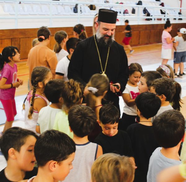 Ο Σεβασμιώτατος είχε την ευκαιρία να ενημερωθεί για το πρόγραμμα από τον Πρόεδρο του Δημοτικού Αθλητικού Πολιτιστικού Περιβαλλοντικού Οργανισμού Σαντορίνης κ. Βασίλειο Αλαφούζο αλλά και να συνομιλήσει με τα γεμάτα ενθουσιασμό παιδιά, να τους προσφέρει ευλογίες και να συμμετάσχει στο παιχνίδι τους.
