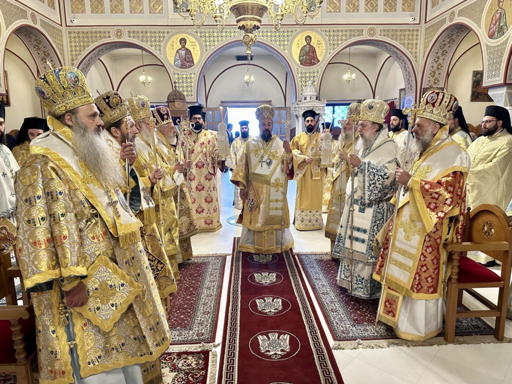 Της πανηγυρικής πολυαρχιερατικής Θείας Λειτουργίας προεξήρχε ο εορτάζων ποιμενάρχης Σεβασμιώτατος Μητροπολίτης Θήρας, Αμοργού & Νήσων κ. Αμφιλοχίου, με συνιερουργία των Σεβασμιωτάτων Μητροπολιτών Σύρου κ. Δωροθέου Β’, Παροναξίας κ. Καλλινίκου, Ιλίου κ. Αθηναγόρου, Κηφισίας κ. Κυρίλλου, Γλυφάδας κ. Αντωνίου, Θεσσαλιώτιδος κ. Τιμοθέου και Σταγών κ. Θεοκλήτου και πρεσβυτέρων και διακόνων εκ διαφόρων Ι. Μητροπόλεων και συμπροσευχομένων απάντων των κληρικών της Θήρας.