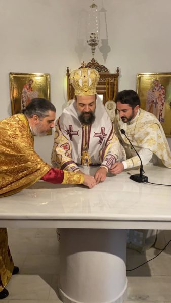 Μέσα στο ευφρόσυνο κλίμα του Ιερού Δωδεκαημέρου ο Μητροπολίτης Θήρας κ. Αμφιλόχιος τέλεσε τα πρώτα εγκαίνια της Αρχιερατείας του, ημέρα της εορτίου μνήμης της ανακομιδής των ιερών λειψάνων του Αγίου νεομάρτυρος Εφραίμ (του εν Νέα Μάκρη Αττικής), στο περικαλλές παρεκκλήσιο της ενορίας Ευαγγελισμού της Θεοτόκου – Εμπορείου, αφιερωμένο στη μνήμη του Αγίου νεομάρτυρος Εφραίμ.