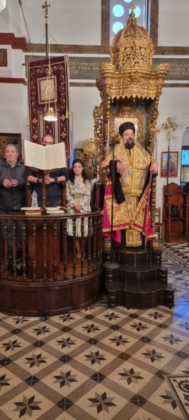 Τόσο στον πανηγυρικό Εσπερινό όσο και στον Όρθρο και στη Θεία Λειτουργία τον πλαισίωσαν ο αιδεσιμολογιώτατος πρωτοπρεσβύτερος π. Ευάγγελος Φουστέρης και ο ιεροδιάκονος π. Χαράλαμπος Σαλίβερος.