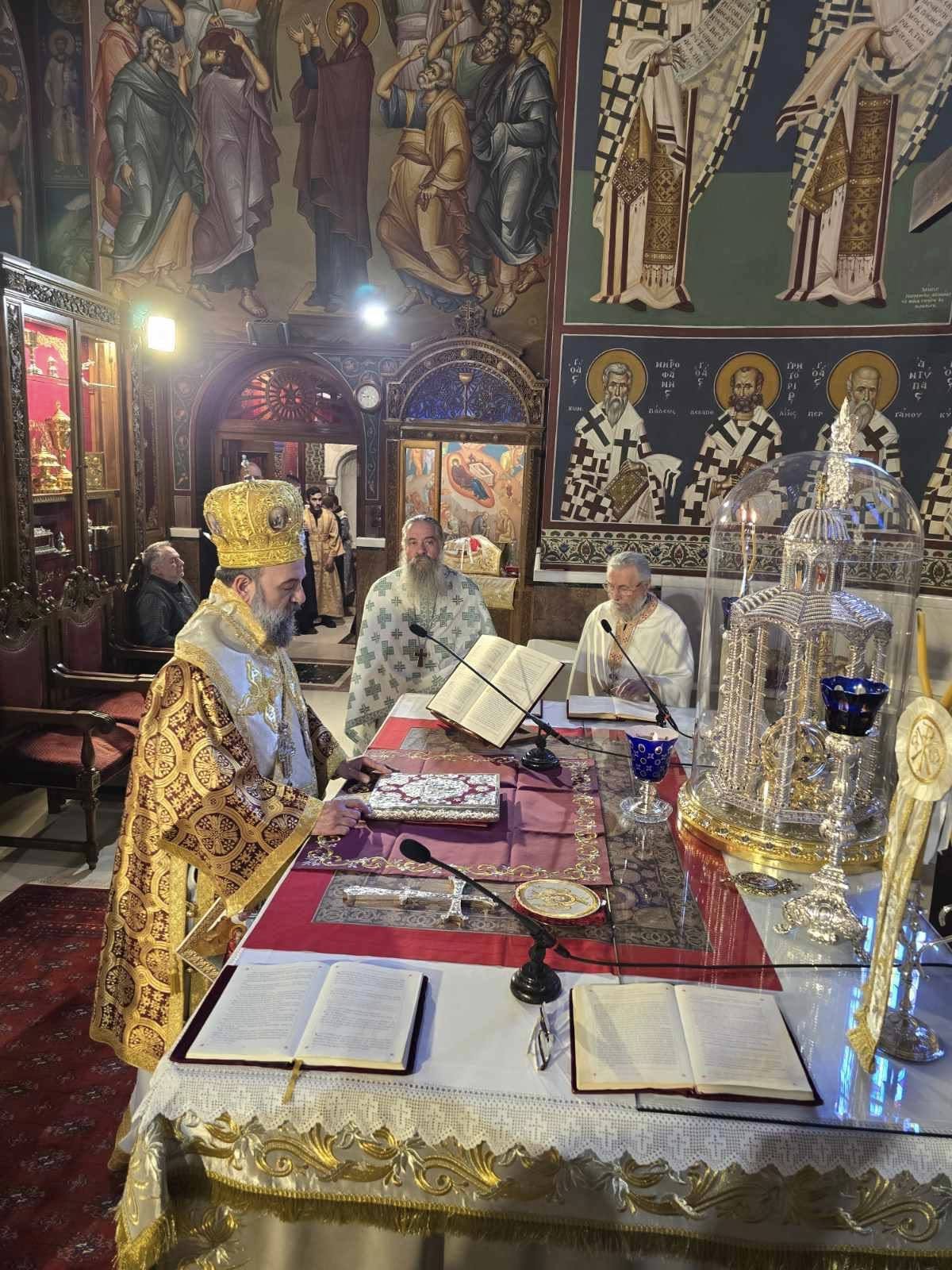 Την Κυριακή των Μυροφόρων, 26 Απριλίου 2026, ο Σεβασμιώτατος Μητροπολίτης Θήρας, Αμοργού και Νήσων κ. Αμφιλόχιος, με τη σεπτή άδεια και ευλογία του Μακαριωτάτου Αρχιεπισκόπου Αθηνών και πάσης Ελλάδος κ. Ιερωνύμου, χοροστάτησε του Όρθρου και ιερούργησε στον περικαλλή Ιερό Ναό Αγίου Νικολάου Καλλιθέας.