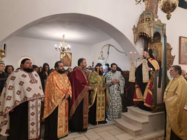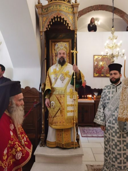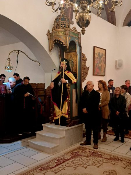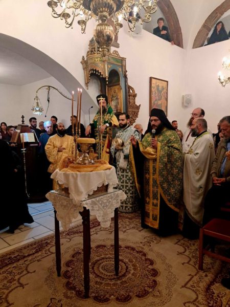 Ανήμερα της εορτής ο Σεβασμιώτατος χοροστάτησε του Όρθρου κι τέλεσε τη Θεία Λειτουργία συμπαραστατούμενος υπό του Πανοσιολογιωτάτου Καθηγουμένου της εν Σαμαρεία Ιεράς Μονής Φρέατος του Ιακώβ Γέροντος Ιουστίνου Αγιοταφίτου, του αιδεσιμολογιωτάτου Γενικού Αρχιερατικού Επιτρόπου της Ιεράς Μητροπόλεως και Προϊσταμένου της Ενορίας του Εμπορείου Πρωτοπρεσβυτέρου π. Νικολάου Σιγάλα, του αιδεσιμολογιωτάτου Πρωτοπρεσβυτέρου π. Χαραλάμπους Σαλιβέρου, Γραμματέως της Ιεράς Μητροπόλεως, του αιδεσιμωτάτου πρεσβυτέρου π. Κυριάκου Καραμολέγκου και των ιεροδιακόνων π. Νεκταρίου Σάκκα και π. Ανδρέου Τσένκο.