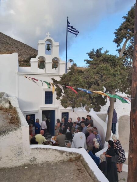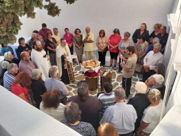 Την παραμονή της εορτής ο Εφημέριος της Ενορίας του Εμπορείου και Γενικός Αρχιερατικός Επίτροπος της Ιεράς Μητροπόλεως, έχων την ευλογία του Σεβασμιωτάτου, τέλεσε την Ακολουθία του Αγιασμού στον αύλειο χώρο του Παρεκκλησίου και ανέγνωσε τις απαιτούμενες ιερές ευχές επί τηι ανακαινίσει του.
