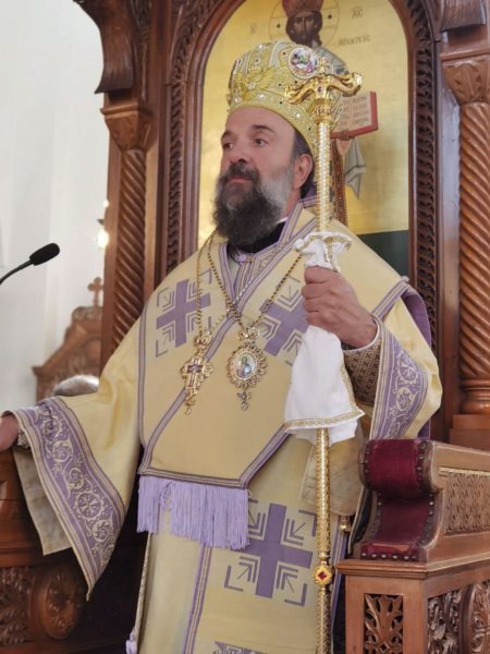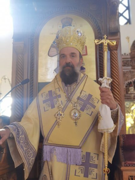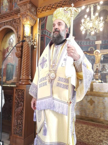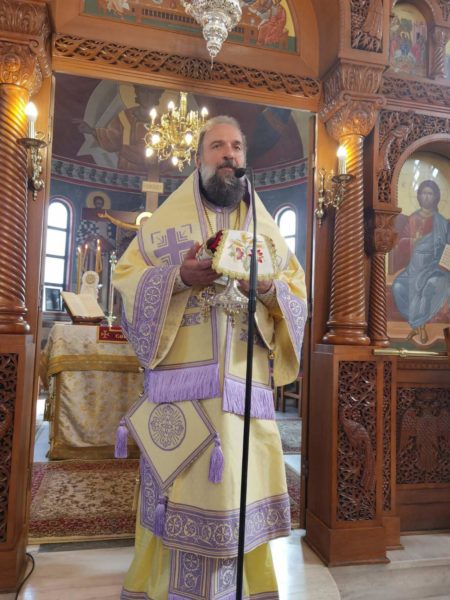 Τον Σεβασμιώτατο πλαισίωσαν ο αιδεσιμολογιώτατος Γενικός Αρχιερατικός Επίτροπος της Ιεράς Μητροπόλεως, πρωτοπρεσβύτερος π. Νικόλαος Σιγάλας, ο αιδεσιμώτατος πρεσβύτερος π. Κυριάκος Καραμολέγκος και ο ιεροδιάκονος π. Νεκτάριος Σάκκας. Κατά τη διάρκεια του Κοινωνικού ανεγνώσθη η διατεταγμένη από την Ιερά Σύνοδο της Εκκλησίας της Ελλάδος Εγκύκλιος με αφορμή τη συμπλήρωση πενήντα ετών από την τουρκική εισβολή στην Κύπρο.