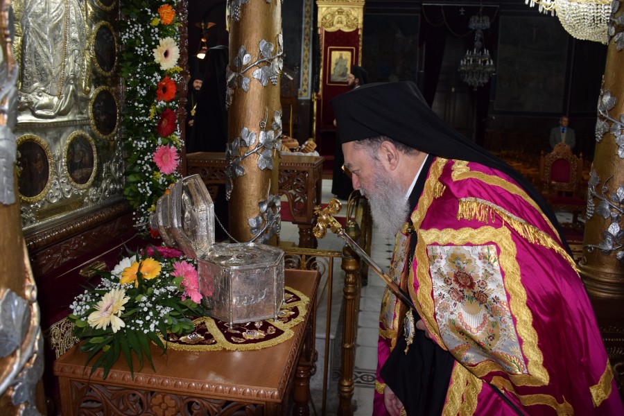 Η λειτουργία τελέστηκε λειτουργούντος του Σεβασμιωτάτου Μητροπολίτου Μάνης κ. Χρυσοστόμου, ενώ συλλειτούργησαν ο Μητροπολίτης Χαλκίδος κ. Χρυσοστόμου και οικείος Μητροπολίτης Θεσσαλιώτιδος και Φαναριοφερσάλων κ. Τιμόθεος.