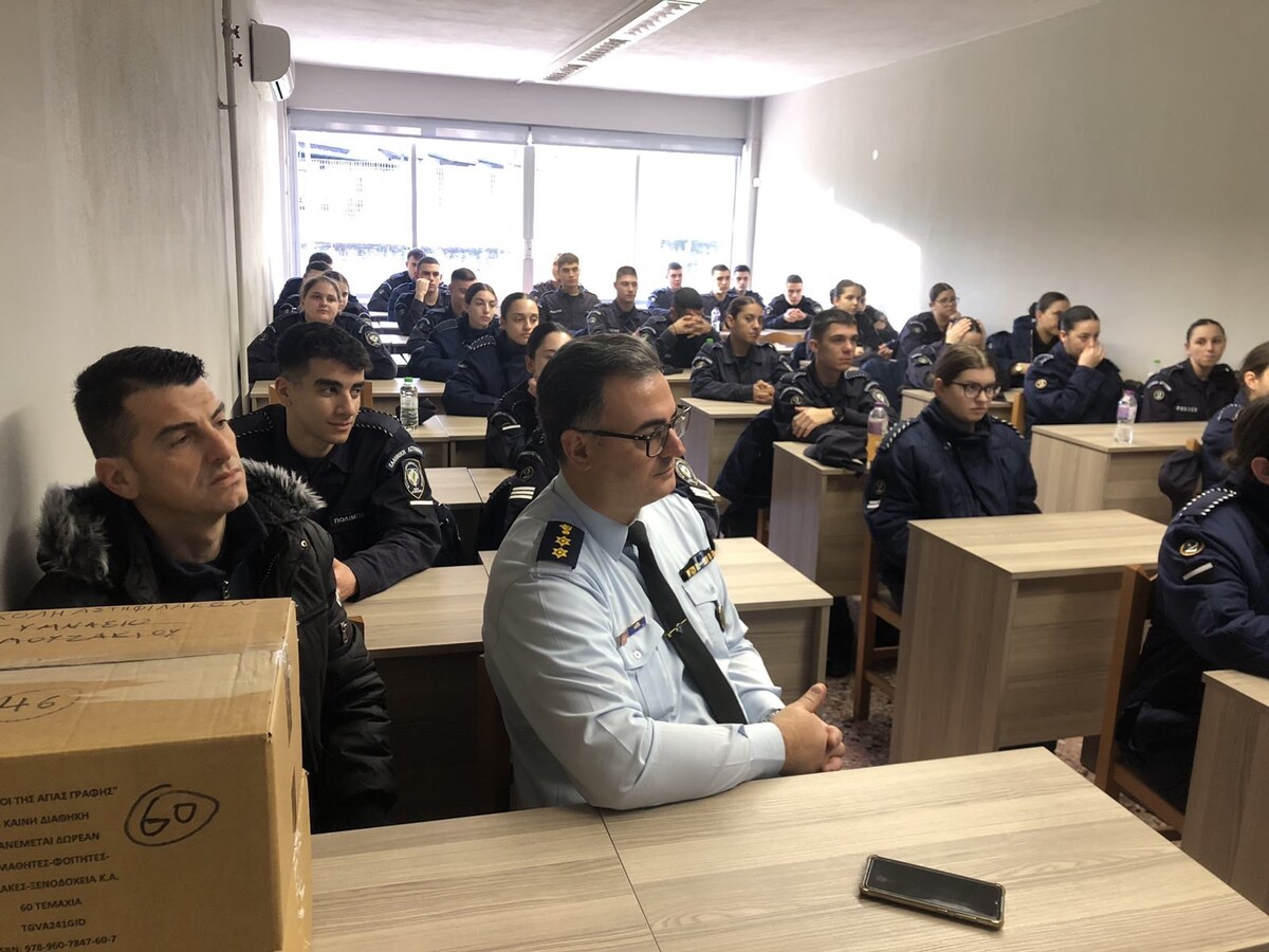 Εκεί είχε την ευκαιρία να απευθύνει διδαχή στους και στις δοκίμους αστυφύλακες, προσφέροντας πνευματικό προβληματισμό και καθοδήγηση πάνω στο επίκαιρο και ιδιαίτερα σημαντικό θέμα «Θρησκευτικός Φονταμενταλισμός».