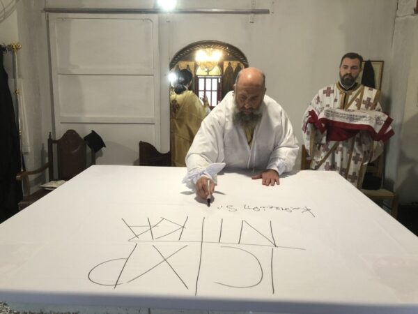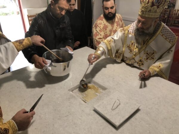 Ενώ, το Σάββατο 19 Οκτωβρίου, χοροστάτησε στην ακολουθία του Όρθρου, τέλεσε την ακολουθία των Εγκαινίων και τη Θεία Λειτουργία.