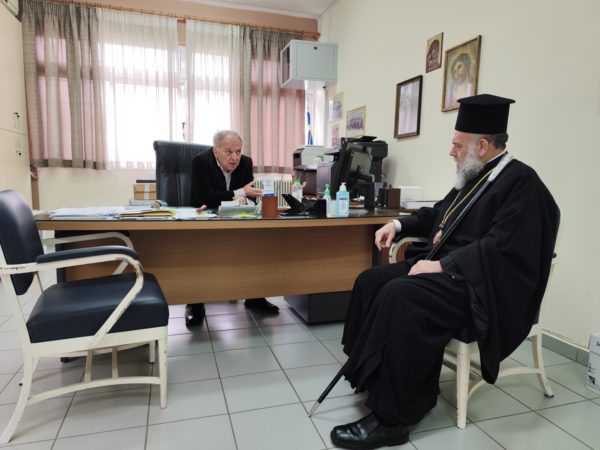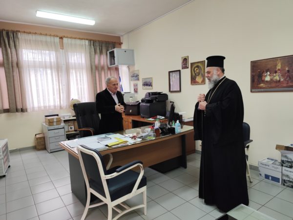 Τον Σεβασμιώτατο υποδέχτηκε ο διευθυντής της σχολικής μονάδος.
