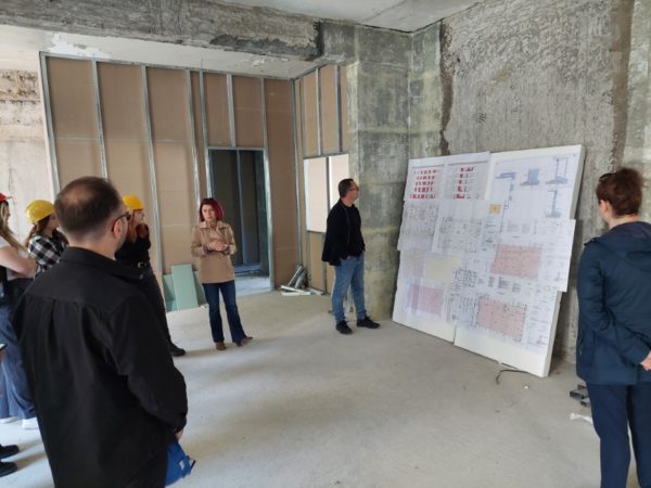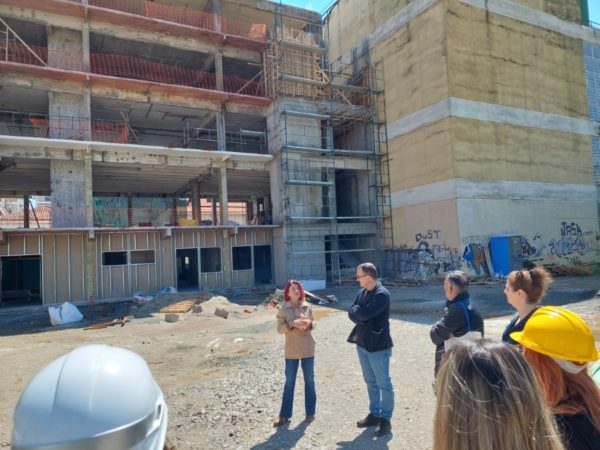Η επίσκεψη στο Κ.Κ.Δ.Κ. πραγματοποιήθηκε με τη συνεργασία της Δ/νσης Τεχνικών Έργων της Περιφέρειας Θεσσαλίας, που υλοποιεί το έργο, υπό την καθοδήγηση και παρουσίαση της επιβλέπουσας Πολ. Μηχανικού του έργου, ικανοποιώντας τις διευκρινήσεις σε τεχνικά θέματα των φοιτητών και καλύπτοντας το αντικείμενο μελέτης τους, το οποίο αφορά την αξιοποίηση με νέες χρήσεις υφισταμένων κελυφών, συγκροτημάτων και περιοχών, καθώς και την κατασκευαστική, δομική και ενεργειακή αναβάθμισή τους, την επανάχρηση κτιρίων ανώνυμης παραδοσιακής αρχιτεκτονικής, τη στατική επάρκεια και ενίσχυση υφισταμένων κελυφών, καθώς και Η/Μ εγκαταστάσεις σε υφιστάμενα κελύφη. Το έργο είναι ενταγμένο στο Περιφερειακό Επιχειρησιακό Πρόγραμμα Θεσσαλίας 2014-2020 και αποτελεί προνοιακή δομή με κοινωνικό, φιλανθρωπικό, πολιτιστικό, εκπαιδευτικό και ψυχαγωγικό χαρακτήρα. Αποτελείται από το ισόγειο, το μεσοπάτωμα και τέσσερις άνω του ισογείου ορόφους και πρόκειται να αποπερατωθεί μέχρι και το τέλος του 2024 προς χρήση.