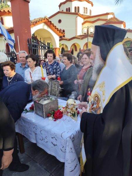Η υποδοχή και οι σχετικές τελετές έλαβαν χώρα παρουσία Ιεραρχών, Ιερού Κλήρου, αρχών και πλήθους πιστών που προσήλθαν να τιμήσουν το Ιερό Λείψανο και να λάβουν την ευλογία του Αγίου.