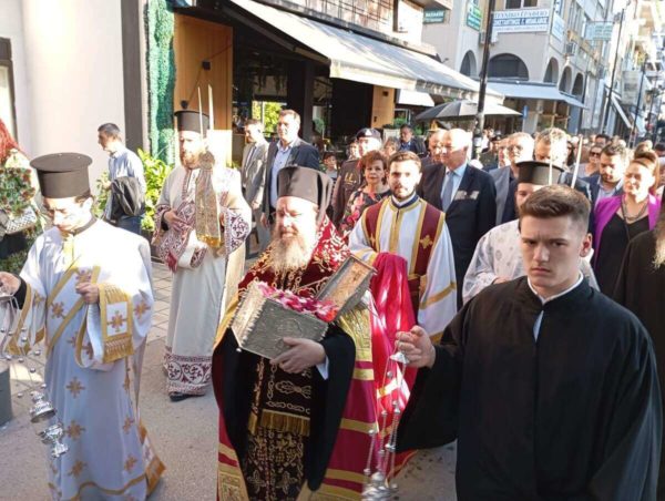 Η ιερά πομπή ξεκίνησε στις 5:00 το απόγευμα από τον Ενοριακό Ιερό Ναό Αγίου Σεραφείμ Φαναρίου, όπου είχε προηγηθεί ο Πανηγυρικός Αρχιερατικός Εσπερινός, προεξάρχοντος του Σεβασμιωτάτου Μητροπολίτη Θεσσαλιώτιδος κ. Τιμοθέου. Πιστοί από την περιοχή προσκύνησαν με ευλάβεια την Τίμια Κάρα και τελέσθηκε δέηση στον τόπο του μαρτυρίου του Αγίου.