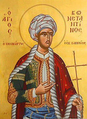 Ο Άγιος Κωνσταντίνος ο εξ Αγαρηνών. Ήταν Μουσουλμάνος, υιός Τούρκου αξιωματούχου της περιοχής Φαναρίου και Καπούας (Καππά). Σε ηλικία είκοσι ετών ασπάσθηκε τον Χριστιανισμό και βαπτίσθηκε στο μοναστήρι του αγίου Νικολάου Καπούας. Με διαταγή του πατέρα του βασανίσθηκε σκληρά και κρεμάσθηκε στο κλωνάρι του μεγάλου πλατάνου. Τρεις φορές κόπηκε ως εκ θαύματος το σχοινί, όμως ο ανηλεής και αμετανόητος πατέρας διέταξε εν τέλει τον αποκεφαλισμό του. Έτσι, ο πρώην Σαίμ στις 18 Αυγούστου του 1610 κατεγράφη εις τας δέλτους των Νεομαρτύρων της Πίστεώς μας, η δε λαϊκή μούσα, απ’ ό,τι λένε, του έπλεξε το γνωστόν δημώδες: «να ’χε καεί ο πλάτανος…».