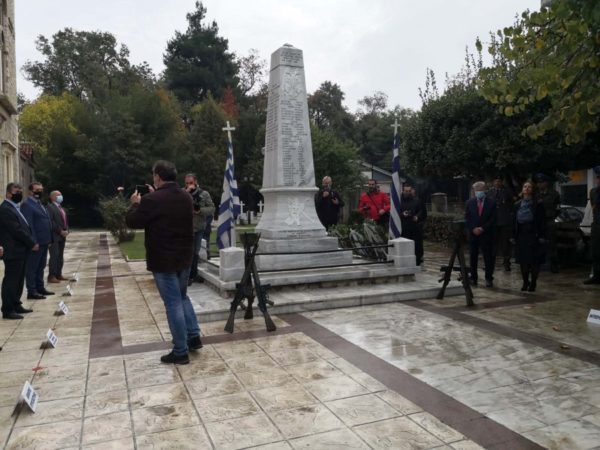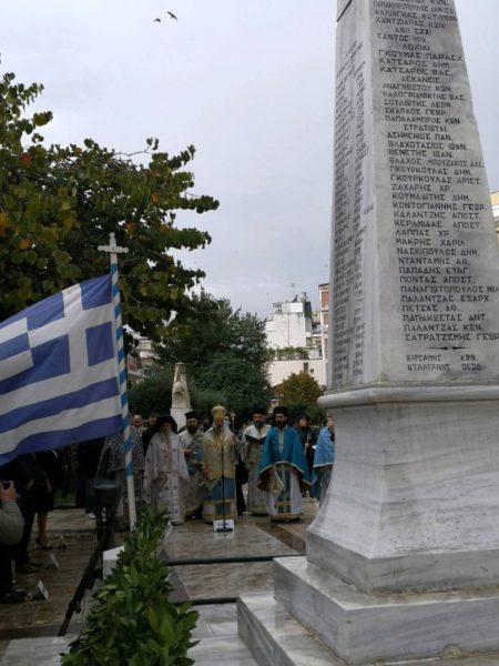 Στη συνέχεια, προέστη της επισήμου Δοξολογίας, η οποία εψάλη μετά το πέρας της Θείας Λειτουργίας, επί τη εθνική επετείω του ΟΧΙ και της επιμνημοσύνου δεήσεως, που έλαβε χώρα στο Ηρώο των πεσόντων στον προαύλιο χώρο του ως άνω Ιερού Μητροπολιτικού Ναού.