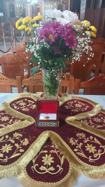Κατά την Ακολουθία ετέθη προς προσκύνηση και αγιασμό των πιστών απότμημα του ιερού λειψάνου του οσίου Αθανασίου (Χαμακιώτου) του νέου.