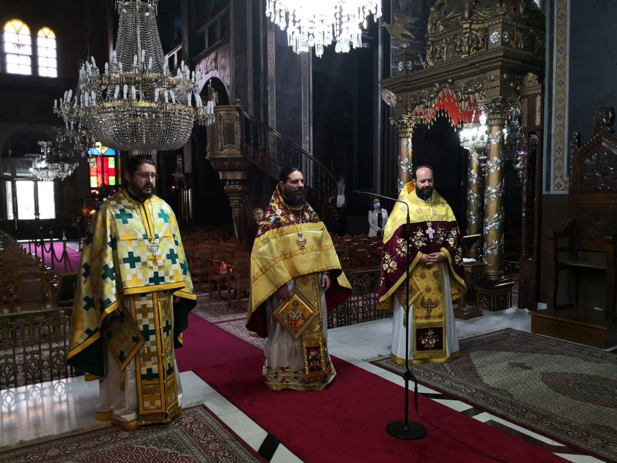 Οι λατρευτικές Συνάξεις τελέσθηκαν στον Ιερό Μητροπολιτικό Αγίων Κωνσταντίνου και Ελένης Καρδίτσης.