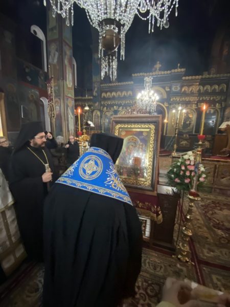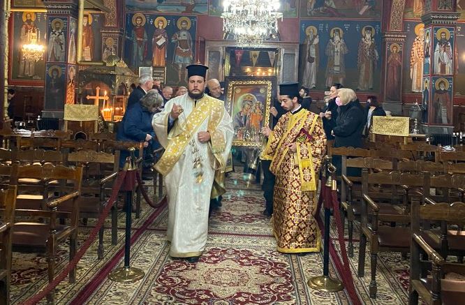 Κατά την έλευση της ιεράς Εικόνος τελέσθηκε Δοξολογία και η ακολουθία της ιεράς Παρακκλήσεως προς την Κυρία Θεοτόκο την επονομαζομένη Βασίλισσα χοροστατούντος του Σεβασμιωτάτου. Εν συνεχεία, τελέσθηκε το Μυστήριο του ιερού Ευχελαίου προεξάρχοντος του Πανοσιολογιώτατου Αρχιμανδρίτου π. Αμφιλοχίου Παπανδρέου, Πρωτοσυγκέλλου της Ιεράς Μητροπόλεως.