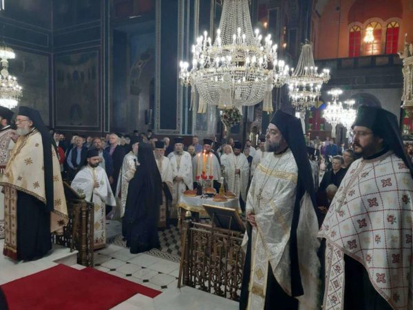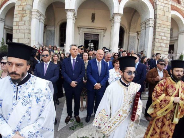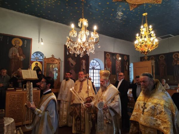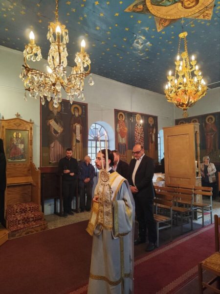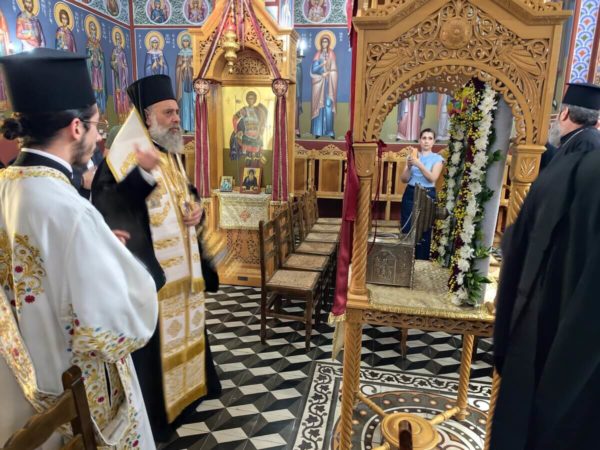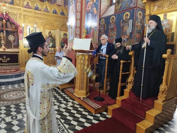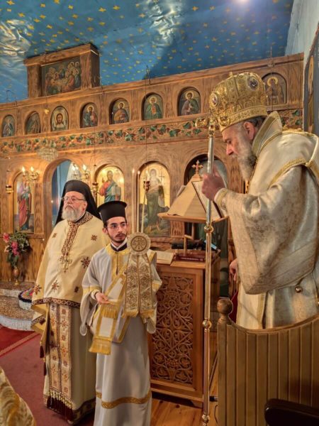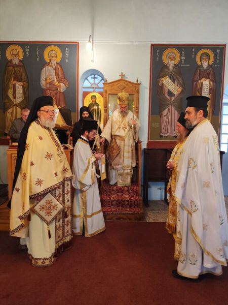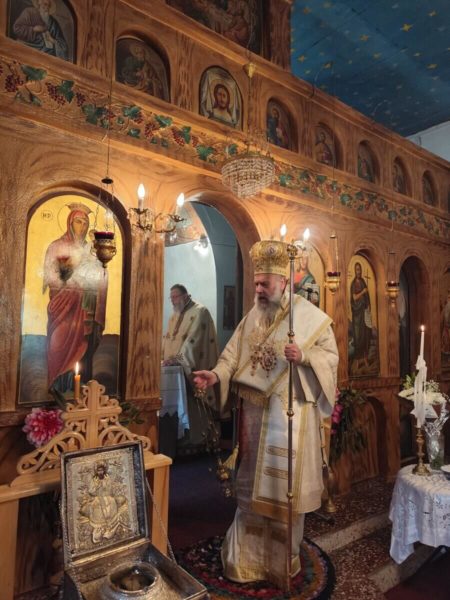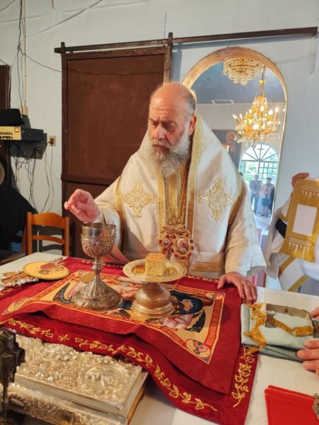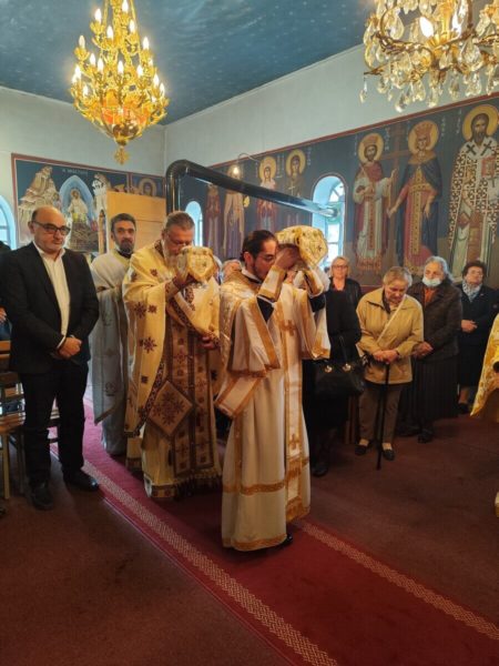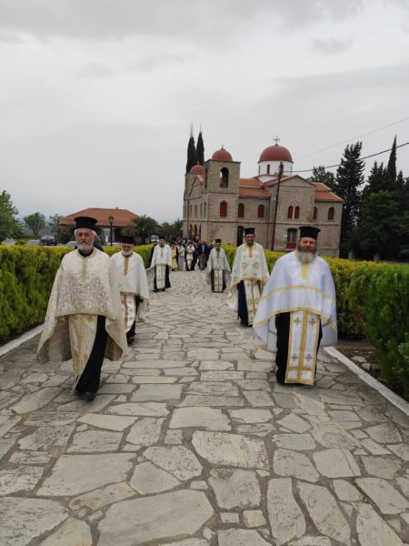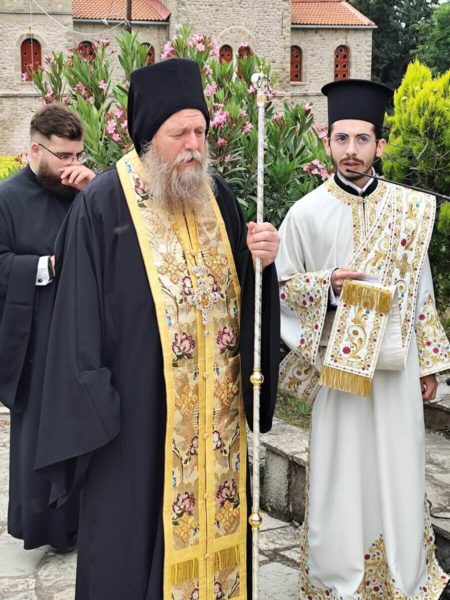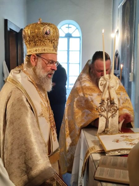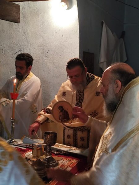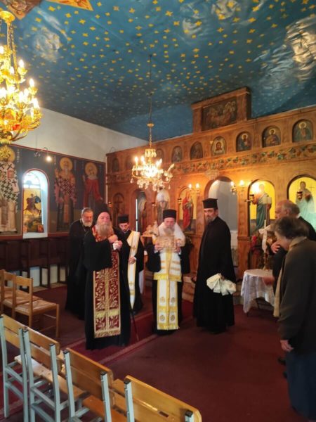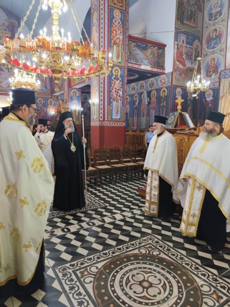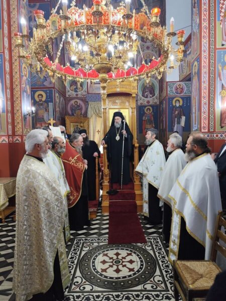 Ακολούθως τελέστηκε πολυαρχιερατική Θεία Λειτουργία, προεξάρχοντος του Σεβασμιωτάτου Μητροπολίτη Ύδρας, Σπετσών και Αιγίνης κ. Εφραίμ και συλλειτουργούντων του Σεβασμιωτάτου Μητροπολίτου Σταγών και Μετεώρων κ. Θεοκλήτου, του Σεβασμιωτάτου Μητροπολίτου Φθιώτιδος κ. Συμεών, του Σεβασμιωτάτου Μητροπολίτου Γόρτυνος και Μεγαλοπόλεως κ. Νικηφόρου και του Σεβασμιωτάτου Μητροπολίτη Θεσσαλιώτιδος και Φαναριοφερσάλων κ. Τιμόθεου καθώς και πλήθους ιερέων και διακόνων.