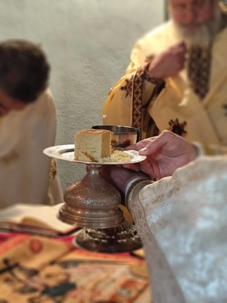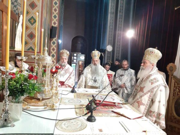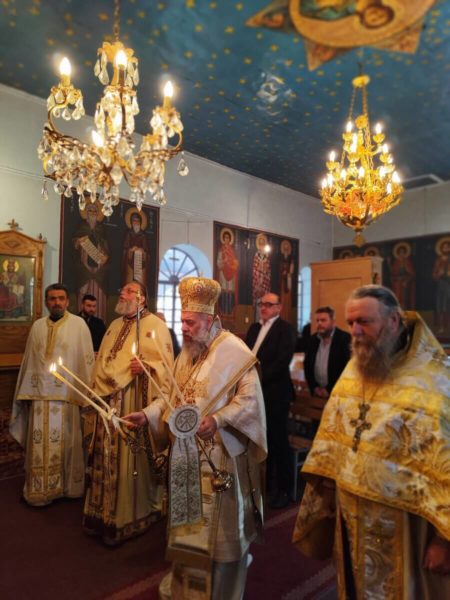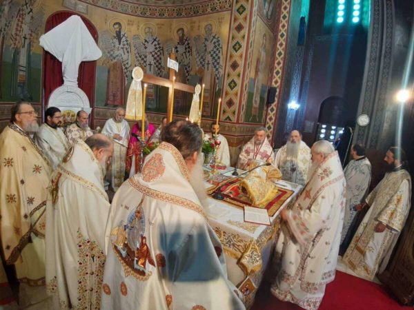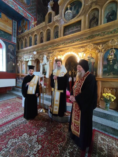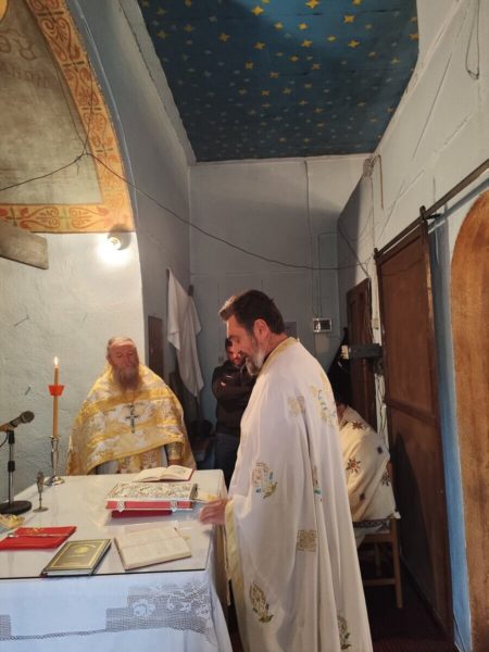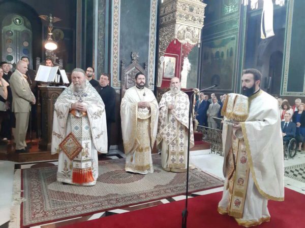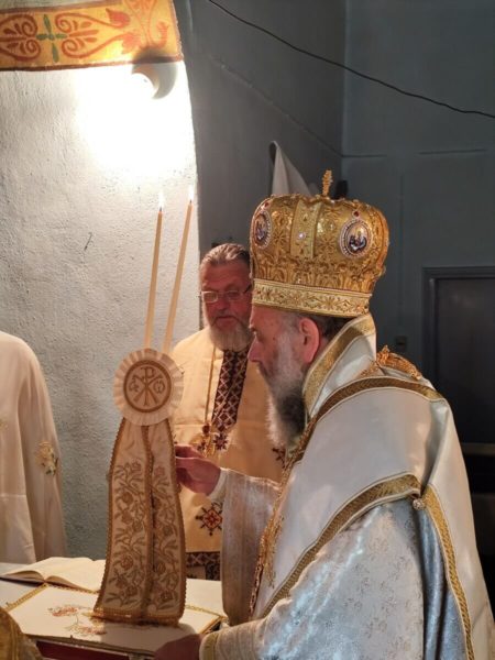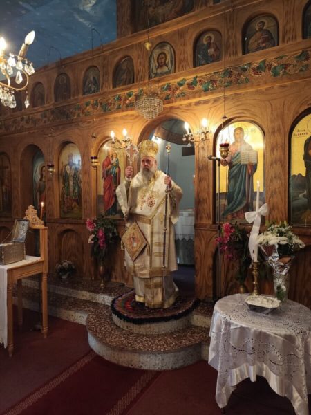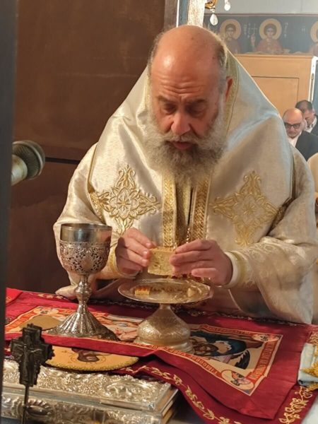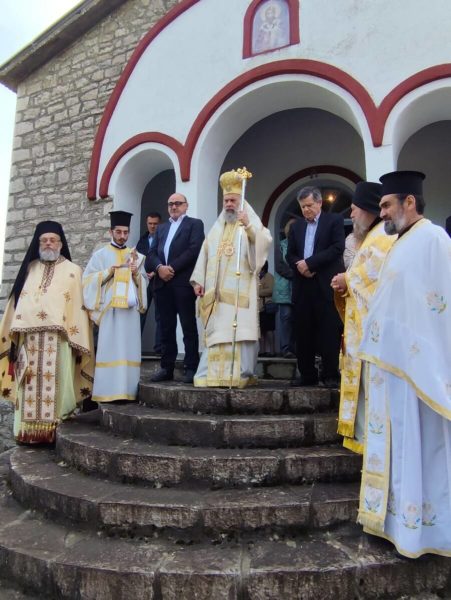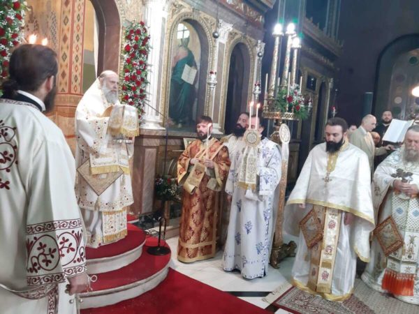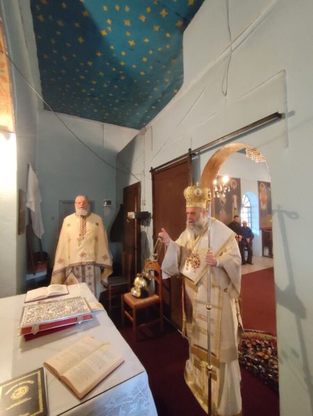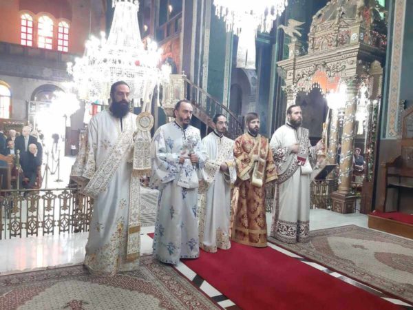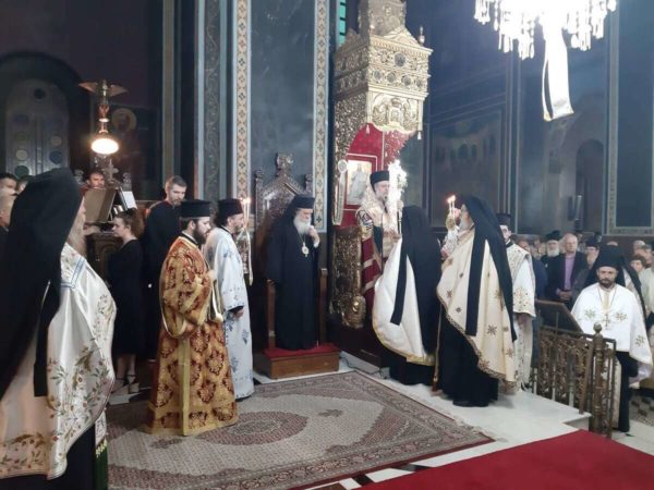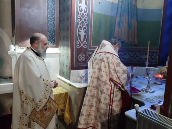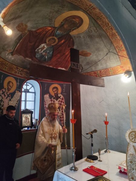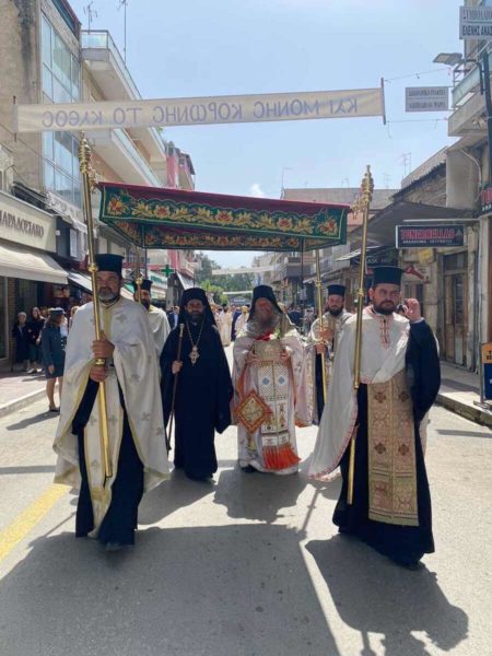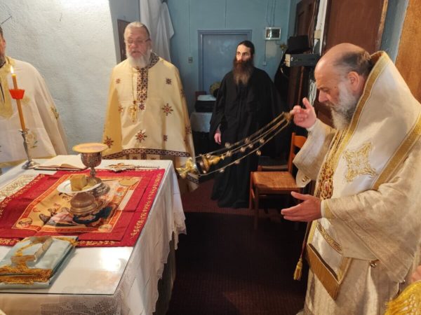 Ακολούθως τελέστηκε πολυαρχιερατική Θεία Λειτουργία, προεξάρχοντος του Σεβασμιωτάτου Μητροπολίτη Ύδρας, Σπετσών και Αιγίνης κ. Εφραίμ και συλλειτουργούντων του Σεβασμιωτάτου Μητροπολίτου Σταγών και Μετεώρων κ. Θεοκλήτου, του Σεβασμιωτάτου Μητροπολίτου Φθιώτιδος κ. Συμεών, του Σεβασμιωτάτου Μητροπολίτου Γόρτυνος και Μεγαλοπόλεως κ. Νικηφόρου και του Σεβασμιωτάτου Μητροπολίτη Θεσσαλιώτιδος και Φαναριοφερσάλων κ. Τιμόθεου καθώς και πλήθους ιερέων και διακόνων.