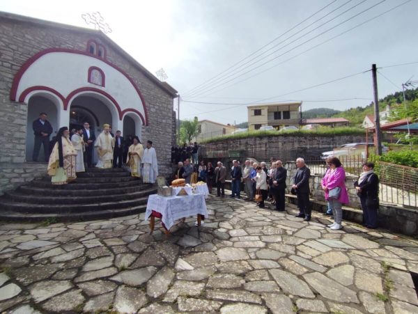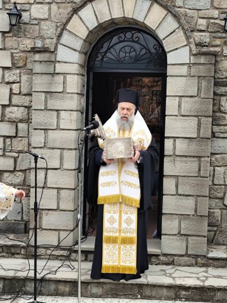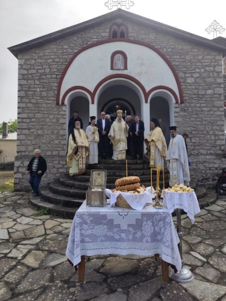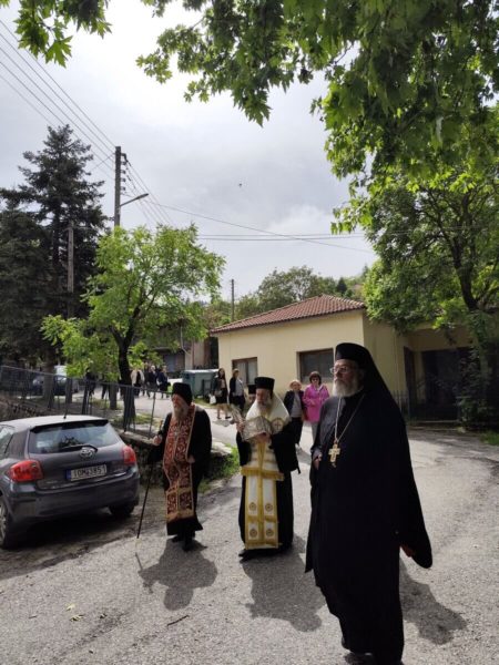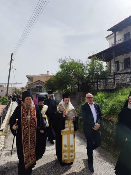 Η μετακομιδή της Τιμίας Kάρας του αγίου ιερομάρτυρος Σεραφείμ ξεκίνησε νωρίς το πρωί του Σαββάτου στη γενέτειρά Του, την Πεζούλα Αγράφων, όπου τελέστηκε Αρχιερατική Θεία Λειτουργία ιερουργούντος του Σεβασμιωτάτου Μητροπολίτου Θεσσαλιώτιδος και Φαναριοφερσάλων κ. Τιμόθεου στον ομώνυμο Ιερό Ναό, με τη συμμετοχή των τοπικών Αρχών και των εκ των πέριξ χωρίων πιστών. Κατά την τέλεση της Θείας Λειτουργίας, εκκλησιάστηκε ο πρώην Πολιτικός Διοικητής του Αγίου Όρους Αθανάσιος Μαρτίνος.