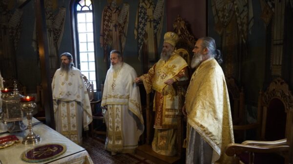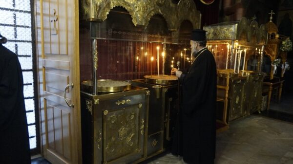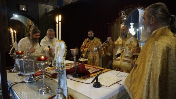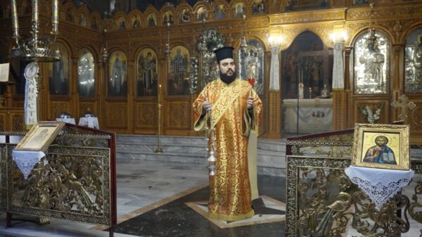 Ο Σεβασμιώτατος Μητροπολίτης Θεσσαλιώτιδος κ. Τιμόθεος, την Πέμπτη της Διακαινησίμου Εβδομάδος 23 Απριλίου 2020, επί τη ιερά μνήμη του αγίου και ενδόξου μεγαλομάρτυρος Γεωργίου του τροπαιοφόρου, τέλεσε την ακολουθία του Όρθρου και τη Θεία Λειτουργία στον Ιερό Ναό Αγίου Γεωργίου Καρδίτσης, κεκλεισμένων των θυρών.